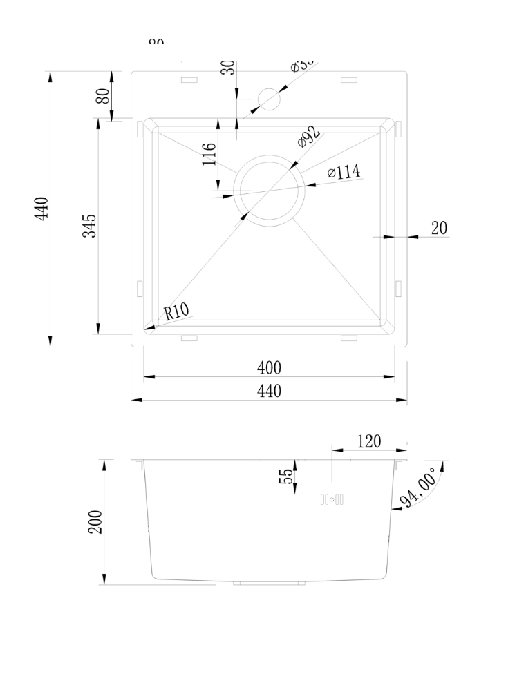 Мойка врезная Vidage, 44x44 см, нержавеющая сталь, цвет хром